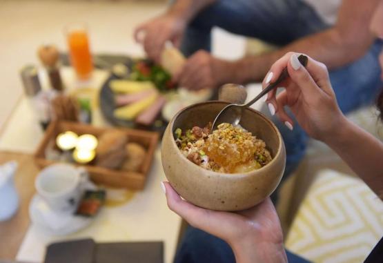 Oaspeții cazați la 10GR Boutique Hotel & Wine Bar la dispoziție un mic dejun american. La acest hotel veți găsi un restaurant care servește mancăruri din bucătăria grecească și mediteraneană. La cerere, sunt disponibile și preparate vegetariene, fără lactate și fără gluten.