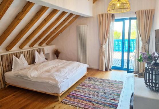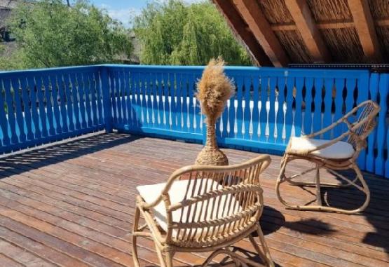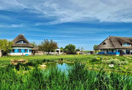Localizare:Pensiunea Cinci Chirpici , 5 margarete din localitatea Murighiol pune la dispozitia oaspetilor sai cazare in casute cu arhitectura specifica zonei Delta Dunarii, realizate din materiale naturale: chirpici, piatra naturala, lemn, stuf, iar la exterior tencuiala din lut cu spoiala de var alb, cu accente decorative albastre.Pentru un plus de confort s-a folosit vopsea lavabila special conceputa impotriva tantarilor.Descriere: Imbinand armonios elementele si detaliile decorative traditionale cu facilitatile unui confort superior, modern, casutele adapostesc 11 camere duble, 1 apartament, 1 camera tripla si o suita cu o capacitate totala de cazare de 43 de persoane.Pensiunea dispune de biciclete pentru adulti si copii care stau mereu la dispozitia oaspetilor, gratuit, o ferma cu animale (ponei, magari, lame, iepuri, capre saltarete, gaini, cocosi, rate, pauni, fazani, struti, cai). Toti oaspetii beneficiaza de o plimbare cu sareta trasa de cal sau o plimbare calare pe cal in manej.La exterior exista loc de joaca pentru copii cu leagan, cos de baschet, poarta de fotbal si ansamblu de jocuri. La interior loc de joaca pentru copii cu playstation si tonomate joc tip arcade, gratuit.La mansarda salonului Arca lui Noe este un minicinema cu videoproiector si canapele/fotolii.Exista deja piscina exterioara, iar incepand de anul acesta va fi si o zona cu piscina incalzita, sezlonguri si beachbar.In zona de SPA, oaspetii pot beneficia, cotra cost, de masaje de relaxare, single sau in cuplu; sau 3ore de access la sauna, jacuzzi si ice bath.Contra cost, se organizeaza excursii pe lacuri si canalele Dunarii, sau catre destinatii cum ar fi Gura Portitei, Sf, Gheorghe, Padurea Caraorman, Sulina. Traseul poate fi si personalizat, la cerere.De asemenea, se pot inchiria barci si pentru pescuit.Camere:Fiecare camera are terasa exterioara deschisa, dar acoperita, iar in interior cuprinde vestibul, baie si spatiul de dormit. De asemenea, pentru un confort sporit, pentru pereti s-a utilizat vopsea anti-tantari.Camera dubla:Terasa comuna acoperita, vestibul baie si spatiu de dormit (pat matrimonial) amenajate intr-un reconfortant minimalism cu rezonanta locala.Apartament:Terasa proprie, vestibul, baie si spatii de dormit (pat matrimonial + 2 paturi twin) amenajate intr-un reconfortant minimalism cu rezonanta locala.Camera tripla 'Casa batraneasca'Suita 'Casa batraneasca'Unitatea ofera gratuit patuturi portabile pentru bebelusi, salteluta speciala si lenjerie.Restaurant:Delta Dunarii este un spatiu renumit nu doar pentru frumusetea sa spectaculoasa, ci si pentru deliciile bucatariei locale. Gatite excelent dupa stravechi retete lipovenesti, borsul de peste, chiftelele sau zacusca de peste, caras prajit cu mamaliga si mujdei, scrumbie la gratar, salata de icre sau malasolca, plachia sau borsul pescaresc iti vor rasfata papilele, indulcind memorabil vacanta dobrogeana la 5 Chirpici. In meniul sunt prezente de asemenea si numeroase feluri de gustoase bucate romanesti.Sunt acceptate animale de companie.