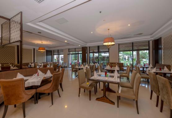 Locurile unde se poate lua masa cuprind o cafenea, un bar și un lobby bar. Clienții sunt răsfățați din punct de vedere culinar în restaurant (nefumători, zonă pentru fumători și à la carte). Băuturile răcoritoare de la barul de pe plajă creează momente minunate. Se oferă spre rezervare regim all inclusive. Clienții de la all inclusive se bucură de oferte speciale, ca de exemplu gustări, de asemenea există o paletă diversă de băuturi alcoolice și nealcoolice, precum și minibar. Un bufet delicios și bogat își așteaptă clienții la micul dejun, prânz și cină. La cerere pot fi pregătite feluri de mâncare vegetariene, mâncare halal și mâncare vegană. La cerere este disponibilă mâncare pentru bebeluși (gratuit).