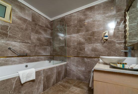 În camere există un aparat de aer condiționat și un sistem de încălzire. În majoritatea spațiilor de cazare clienții beneficiază de vedere spre mare de pe balcon sau de pe terasă. Camerele au un pat dublu sau un pat „King size”. Sunt disponibile dormitoare separate. De asemenea, pot fi puse la dispoziție pătuțuri pentru bebeluși și paturi suplimentare. De asemenea, sunt disponibile un seif și un minibar. Echiparea de bază cuprinde de asemenea și un aparat pentru cafea/ceai. În plus, există un telefon, un televizor cu ecran plat cu canale prin satelit și WiFi (gratuit). În cameră se găsesc și papuci de casă. Băile sunt dotate cu un duș și o cadă. Un uscător de păr, o oglindă de machiaj și halate de baie sunt disponibile pentru folosința zilnică. De asemenea, stau la dispoziție 3 camere adaptate pentru scaun rulant cu baie fără bariere. Complexul oferă camere de familie, camere de nefumători și camere pentru fumători.