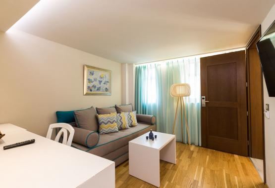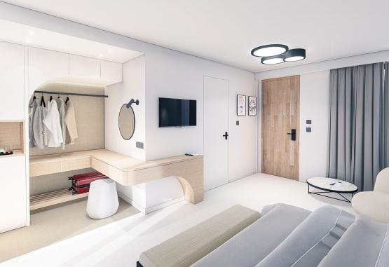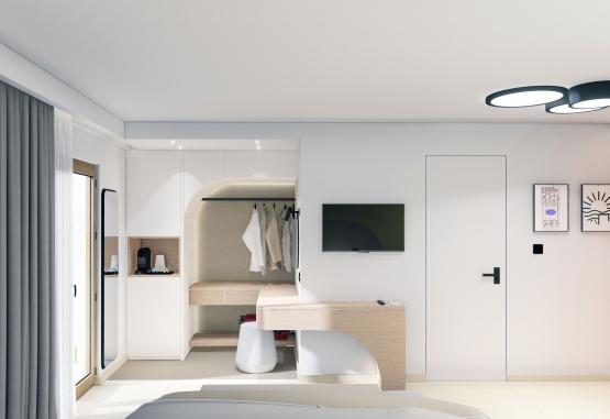 Aparatul de aer condiționat și sistemul de încălzire creează o atmosferă plăcută în camere. În majoritatea spațiilor de cazare clienții beneficiază de vedere spre mare de pe balcon sau de pe terasă. Camerele au un pat dublu sau o canapea. Sunt disponibile dormitoare separate. Paturile suplimentare sau paturile pentru copii sunt disponibile pentru cei mici contra cost. Lucrurile de valoare pot fi păstrate în siguranță într-un seif. În chicinetă se află un frigider și un aparat pentru cafea/ceai. Telefonul, canale prin satelit și WiFi-ul (gratuit) oferă un concediu confortabil. În baia dotată cu o cadă se află un uscător de păr. Articolele de cosmetică creează un confort deosebit în băi. Pentru familiile cu copii stau la dispoziție camere de familie.