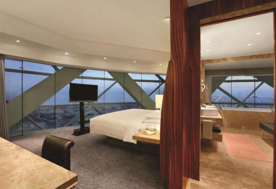 Andaz Capital Gate Abu Dhabi este situat in renumita clădire Capital Gate, la o scurtă plimbare de centrul de expozitii. Hotelul oferă camere luxoase, cu ferestre din podea pană in tavan si vedere la oras.