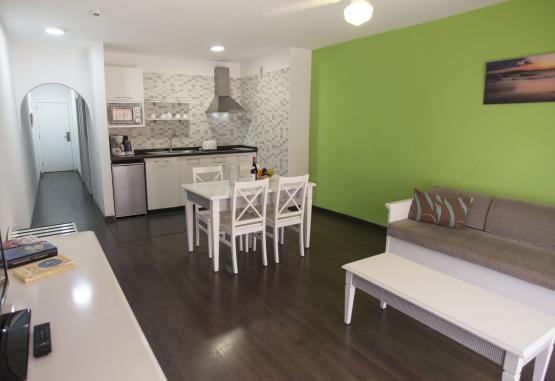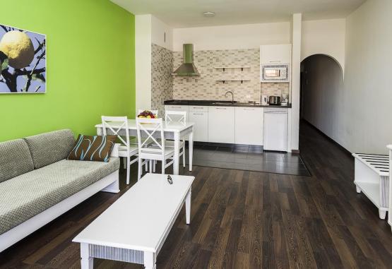 În camere există o sufragerie și o baie; ventilatorul creează o atmosferă plăcută. Balconul sau terasa sunt incluse în dotările standard ale majorității camerelor. Sunt disponibile dormitoare separate. De asemenea, există un minibar și un seif contra cost. Datorită unui frigider, unui aragaz, unui cuptor cu microunde și unui aparat pentru cafea/ceai, chicineta este bine echipată pentru cei ce se aprovizionează singuri. În plus, există un telefon cu apelare directă, un televizor cu ecran plat și WiFi (gratuit). În baia dotată cu un duș stă la dispoziție un uscător de păr. Locul de cazare oferă 146 de camere de nefumători.