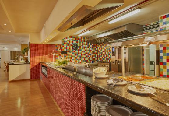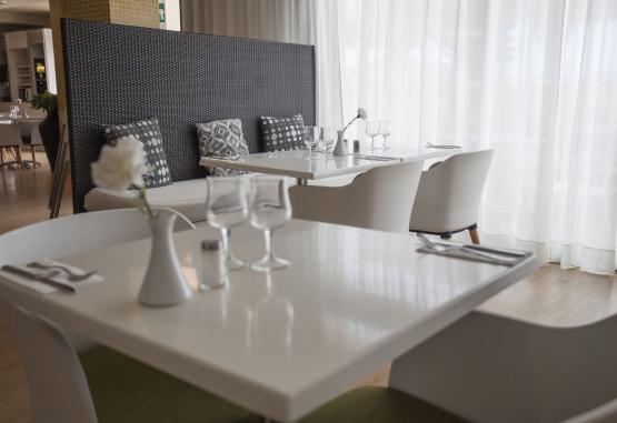 Clienții iau mesele în atmosfera plăcută a restaurantului (nefumători și bufet). Hotelul oferă un sortiment de băuturi alcoolice și nealcoolice.