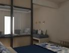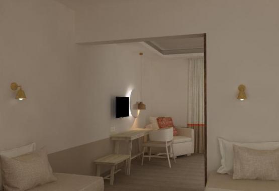 Camerele sunt amenajate cu o sufragerie, o bucătărie și o baie, de asemenea, un aparat de aer condiționat și o pardoseală incălzită ce poate fi ajustată individual contribuie la o atmosferă agreabilă. In majoritatea spațiilor de cazare clienții beneficiază de vedere spre mare de pe balcon sau de pe terasă. Camerele au un pat dublu sau o canapea. Există dormitoare separate. Contra cost poate fi pus la dispoziție un pat suplimentar. Datorită unui frigider, unui aragaz, unui aparat pentru cafea/ceai și unei mașini de spălat vase, chicineta este bine echipată pentru cei ce se aprovizionează singuri. Clienții au parte de mai mult confort și datorită mașinii de spălat. In plus, există un telefon, un televizor și WiFi (gratuit). Băile sunt dotate cu un duș și o cadă. Articolele de cosmetică creează un confort deosebit. Se oferă spre rezervare camere adaptate pentru scaun cu rotile. Pentru familiile cu copii stau la dispoziție camere de familie.