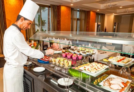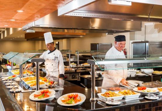 Locurile unde se poate lua masa cuprind 5 restaurante, o cafenea și un bar. Locul de cazare oferă pentru masă demipensiune și regim all inclusive. Printre avantajele unui sejur all inclusive se numără diverse oferte, ca de exemplu o selecție de băuturi alcoolice și nealcoolice. Un bufet bogat la micul dejun, pranz și cină sunt delicioase și pregătite foarte diversificat. Pentru preferințe speciale, resortul are la dispoziție și feluri de mancare vegetariene. O atracție deosebită este gătitul in fața musafirilor.