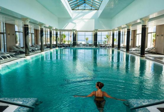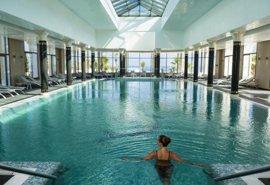 Pe langă piscinele interioare și exterioare există un spațiu de scăldat amenajat pentru copii. Sunt disponibile o terasă insorită, șezlonguri și umbrele. La barul piscinei clienții vor găsi diverse băuturi răcoritoare. Activitățile numeroase și diverse propuse la locul de cazare garantează distracții sportive, ca de ex. tenis, boccia, volei de plajă, partide de golf, tir cu arcul, mers nordic și călărie. Și iubitorii sporturilor acvatice se vor simți minunat datorită unor activități precum windsurfing, plimbări cu scuterul acvatic, canoe și aqua-fitness. Hidrobicicletă și plimbări cu banana sunt organizate de ofertanți terți. Resortul oferă mai multe posibilități de a practica activități sportive in interior, ca de exemplu o sală de fitness, tenis de masă, un joc de darts, gimnastică și aerobic, iar contra cost biliard. In complex sunt propuse diverse oferte de relaxare, ca de exemplu spa, saună, baie de aburi, hamam, salon de infrumusețare, terapii prin masaj, cură, talasoterapie, terapii anti-imbătranire și terapii ayurvedice. Alte oferte de petrecere a timpului liber includ un program de recreere, un miniclub, o minidiscotecă și muzică live. Copyright GIATA 2004 - 2023. Multilingual, powered by www.giata.com for client no. 128259