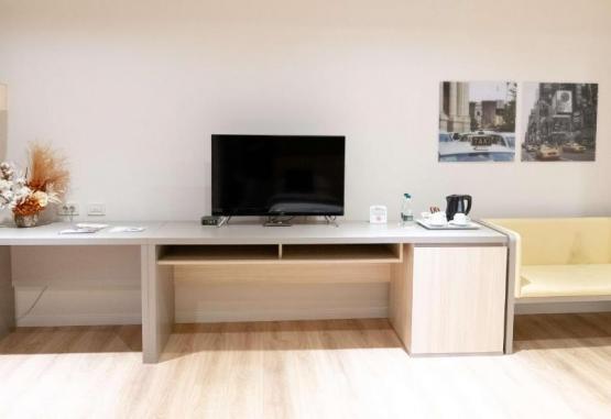 Camerele sunt dotate cu televizor și minibar. Este pusă la dispoziție și o masă. Baia privată este dotată cu duș sau cadă, bideu și ușcător de păr. Camerele au vedere la grădină. Printre facilități se numără, de asemenea, o zonă de relaxare, canale prin satelit și canale prin cablu.
