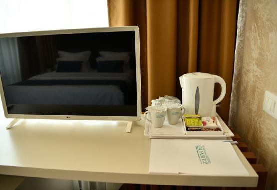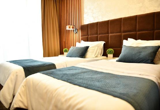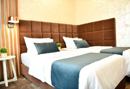 Va informam ca incepand cu sezonul 2023, se va incasa la receptie in momentul cazarii taxa de statiune, reprezentand 1% din valoarea tarifului de cazare fara T.V.A, pentru fiecare noapte de cazare conform HCL NR. 614/27.12.2022InformatiiEste situat la 2 minute de mers pe jos de plaja si la doar 5 minute de AquaMagic si Telegondola.Dotari si servicii- 8 camere duble deluxe cu balcon;- 6 camere duble deluxe;- 3 camere twin deluxe;- 2 terase - restaurant;- bar;- parcare.Servicii masaRestaurant propriu:Mic dejun - bufet suedezDemipensiune - mic dejun bufet suedez + pranz/ cina ( 3 optiuni de masa - fel principat + desert)Dotari camereCamera dubla superioara cu pat matrimonial si balcon - permite acomodarea a 2 adulti, 2 adulti si 1 copil sub 6 ani;Camera dubla superioara cu pat matrimonial - permite acomodarea a 2 adulti, 2 adulti si 1 copil sub 6 ani;Camera twin - permite acomodarea a 2 adulti.Facilitati copiiIn camera cu 2 adulti:- primul copil 0- 6.99 ani gratuit la cazare si mic dejun, fara pat suplimentar; al 2lea copil achita 38 lei/ zi contravaloarea micului dejun;- 7- 11.99 ani achita 200 lei si se ofera pat suplimentar cu mic dejun inclus.