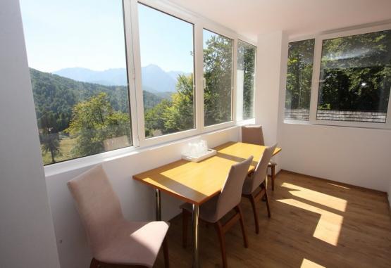 CABANA TREI BRAZI este o locatie deosebita, situata la poalele Masivului Postavarul, intr-o zona linistita si impadurita, la doar 10 minute de Predeal. Ofera 21 spatii de cazare (42 locuri): apartamente si camere duble, imbinate cu aer curat si confort deosebit.DOTARI SI SERVICII:Restaurantul Cabana Trei Brazi reda traditia si atmosfera traditional romaneasca, cu bucate alese, gatite de bucatari priceputi, toate servite ireprosabil in vesela taraneasca de lut. Restaurantul dispune de o terasa generoasa si nu ar fi complet fara crama ce te poarta in vremuri de odinioara, un loc intim decorat in stil pur traditional, perfect pentru a organiza petreceri intre prieteni, zile onomastice, botezuri, dar si evenimente corporate.Toti clientii nostri beneficiaza de Wi-Fi gratuit, in camera, in restaurant, pe terasa, in crama, cat si de parcare privata gratuitaRestaurant Cabana Trei Brazi cu specific romanesc:Restaurant capacitate 120 de locurITerasa cu o capacitate de 120 locuriService barCrama cu o capacitate de 20 de locuriInternet acces.Dotari camere:Camerele duble - au o suprafata de aproximativ 14 mp, baie proprie,