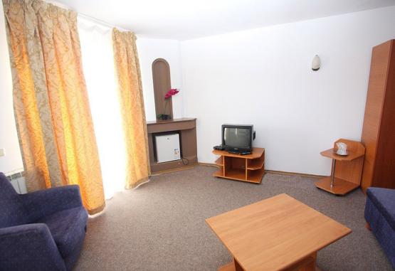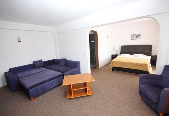 TV, telefon, iar unele au balcon, pat matrimonial confortabil, internet.Apartament standard - cu o suprafata de aproximativ 30 mp, recomandat familiilor cu copii sau persoanelor care doresc un confort sporit. Acestea au baie proprie, living cu canapea extensibila si dormitor cu pat matrimonial,