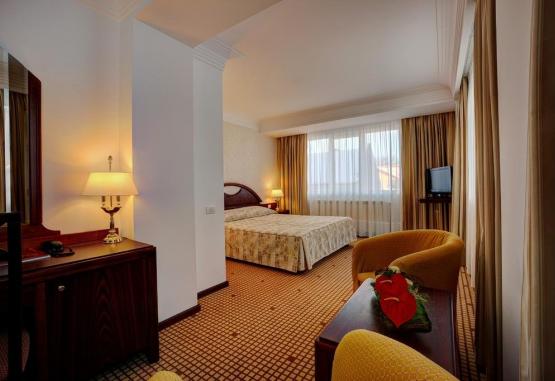 In municipiul Brasov se percepe o taxa locala pentru turisti, in valoare totala de 12 lei/persoana/noapte, care include taxa de promovare turistica si taxa Salvamont. Taxa este suportata de turist si se achita la receptie.Camerele King Superioare au o suprafata de 38 mp, vedere catre curtea interioara si gradina.Camerele Duble Superioare au o suprafata de 32 mp, vedere catre oras.Camerele Duble Deluxe au o suprafata de 26 mp, vedere atat catre curtea interioara,