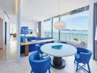 Unitățile de cazare au un design bine gandit și sunt dotate cu aer condiționat, uși din sticlă din podea pană in tavan, TV cu ecran plat și frigider. Majoritatea camerelor oferă terasă privată cu vedere la mare sau la munte, iar suitele au piscină privată. Toate unitătile de cazare au baie proprie cu duș și uscător de păr.