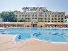 Localizare:La 30 m de plaja si la 600 m de gara si dispune de 3 etaje si 186 camere duble, 33 apartamente, 6 lifturi, 2 restaurante, o sala de conferinte cu o capacitate de 100 locuri, centru de tratament si wellness, piscina exterioara, parcare pazita, room service.Cazare:Camera dubla standard (fara balcon): pat matrimonial sau twin, dus, uscator de par, sistem de climatizare, seif, cablu TV, minibar, telefon, wireless.Camera dubla superior (cu balcon): pat matrimonial, dus, uscator de par, sistem de climatizare, cablu TV, minibar, telefon, balcon, wireless. Apartament standard: living cu o canapea extensibila, dormitor cu pat matrimonial, dus, uscator de par, sistem de climatizare, seif, cablu TV, minibar, telefon, wireless.Apartament superior: living cu o canapea extensibila, dormitor cu pat matrimonial, dus, uscator de par, sistem de climatizare, seif, cablu TV, minibar, balcon, telefon, wireless.