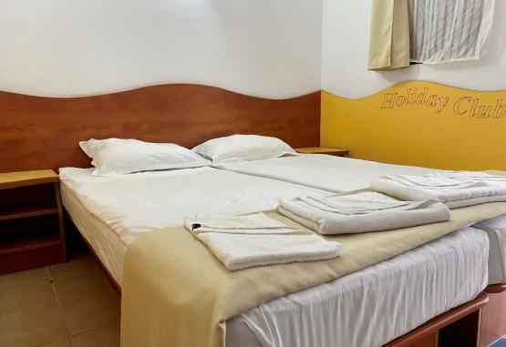 COMPLEX CASUTE HOLIDAY CLUB NEPTUN este situat pe marginea lacului Neptun II, langa Biserica Ortodoxa, vis-a-vis de Bazarul Prichindel, intr-un cadru feeric creat de vegetatia forestiera, la o distanta de circa 600 m de plaja. Complexul este format din 24 casute tip 'bungalow', respectiv 48 de camere duble, fiecare avand doua camere independente, cu intrari separate, situate intr-un cadru feeric creat de vegetatia forestiera.Receptia si check-inul se va face de la Hotel SaraVa informam ca incepand cu sezonul 2021 se va incasa la check-in taxa de statiune, in valoare de 5 lei/persoana/zi, conform HCL 283/23.12.2020. Vor fi taxate toate persoanele cu varsta de 18 ani impliniti.Dotari si serviciiComplex Casute Holiday Neptun ofera loc de joaca pentru copii, gratare la fiecare vila, zona de promenada, zona de pescuit si parcare gratuita.Zona in care este amplasat este una de poveste, plina de verdeata, ceea ce recomanda locatia pentru iubitorii de natura, liniste si relaxare. Situat intr-un cadru intim si inconjurat de vegetatie forestiera asigura ambientul necesar pentru petrecerea unui sejur cu adevarat de vacanta.Accepta animalele de companie.Servicii masaMic dejun - bufet suedez; optional la hotel SaraDotari camereFiecare casuta are cate 2 camere cu intrari separate (suprafata utila de 12-15 mp), cu 2 paturi single sau 1 pat matrimonial, grup sanitar propriu si terasa, dotate cu: aer conditionat, tv color (cablu tv), mini-frigider (racitor), internet.Facilitati copiiIn camera cu 2 adulti:- 0 - 11.99 ani beneficiaza de gratuitate fara pat suplimentar.Mic dejun:- 0 - 1.99 ani gratuit la masa.- 2 - 11.99 ani achita 50% din valoarea mesei.