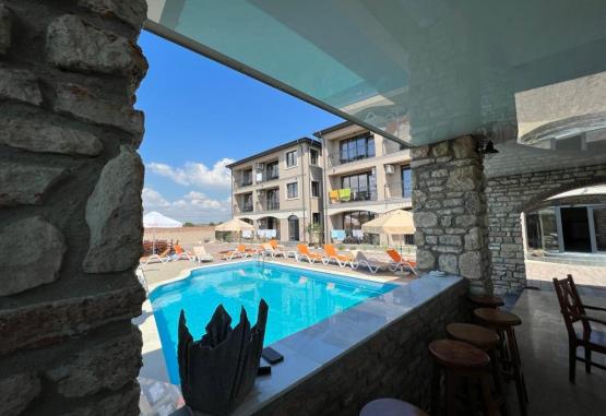Complexul este format din 26 de camere duble, triple cat si apartamente moderne si comfortabile cu terase spatioase, moderne si cu accente vintage, avand toate dotarile necesare pentru a petrece un sejur linistit.Ca si facilitati in cadrul complexului amintin: piscina, acces gratuit la internet WiFi, foisor si o vedere superba la mare. Toate Unitatile de cazare au terasa proprie cu mobilier, aer conditionat, TV cu ecran plat, minifrigider, baie privata cu dus, produse de igiena.
