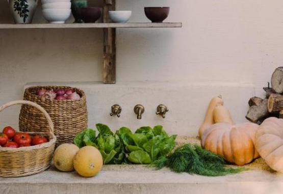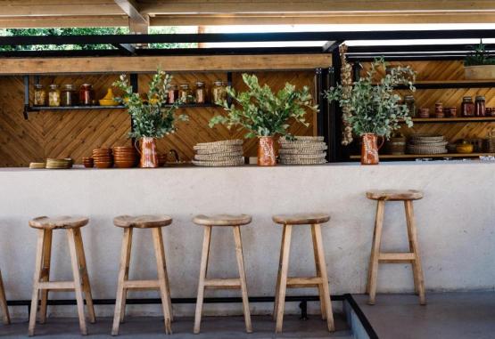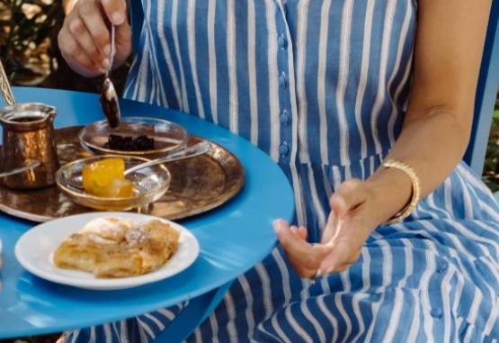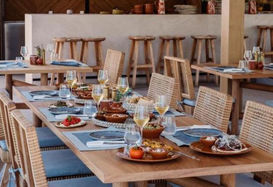 Oaspeții iși pot incepe ziua cu un mic dejun mediteranean sau cretan, care include diverse tipuri de branză, plăcinte de casă și miere. Pentru masa de pranz, oaspeții pot alege intre mese à la carte la restaurantul Mediterraneo, preparate din bucătăria italiană la Almyra, tapas la Beach Shack și specialități levantine la noul local MEZZE de langă piscină. Pentru cină, oaspeții au la dispoziție restaurantul Mediterraneo, restaurantul cretan Mouries, restaurantul italian Almyra, restaurantul Mezze și The Beach Shack. Este disponibilă o selecție superioară de vinuri și băuturi.