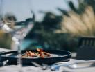 Restaurantul-terasă Haven oferă preparate din bucătăria internatională si mic dejun tip bufet cu clătite gătite la comandă, ouă si omlete posate si oferă vedere panoramică la portul propriu al hotelului si la Golful Limassol. De asemenea, oaspetii pot savura preparate fusion din bucătăria italiană la restaurantul La Brezza, cu vedere la mare. O varietate de băuturi si cafea este servită la barul Med de la piscină si la barul sezonier Lime pe plajă, iar barul The Lounge oferă cocktailuri si divertisment live. Se oferă si room service disponibil nonstop.