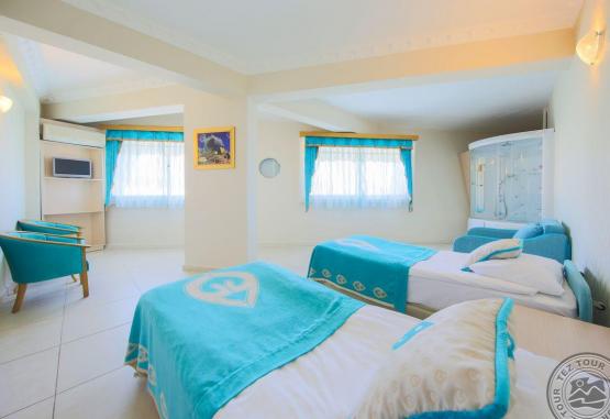 Situat la 62 km de aeroportul Antalya, la 7 km de orasul Kemer, in localitatea Kiris, pe malul marii (accesul prin pasaj subteran).