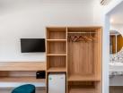 Facilitati camere: pat matrimonial sau paturi twin, baie cu cadă sau duș, TV prin satelit, seif,uscător de păr, fier de călcat, minibar, frigider, baie privată și balcon sau verandă.