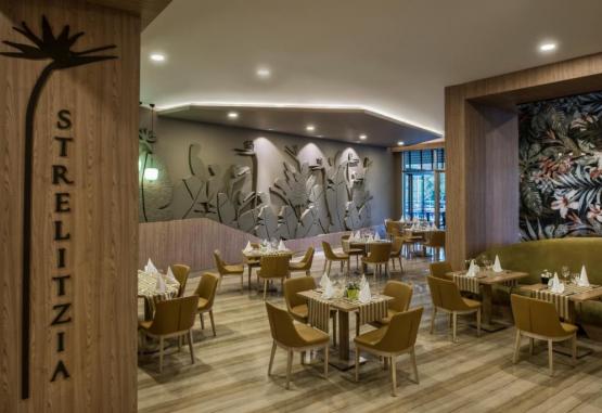 Oferta culinară de la Delphin BE Grand Resort variază de la preparate italiene la mancăruri chinezești și specialități la grătar. Mai multe lounge baruri asigură divertisment de seară, iar barul de pe plajă servește gustări ușoare.
