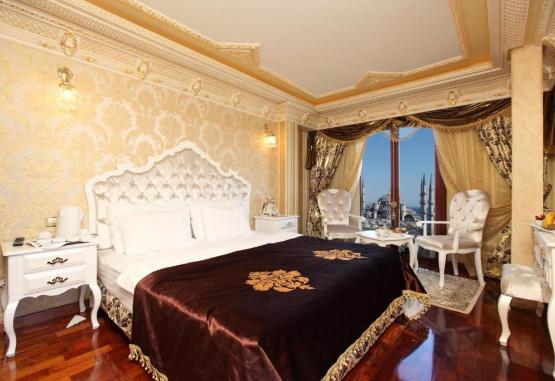 Acest hotel luxos este situat central in zona Sultanahmet, la 10 minute de mers pe jos de Marele Bazar. Hotelul se află la doar cațiva pași de stația de tramvai Sultanahmet si oferă camere cu decor in stil otoman. La o scurtă plimbare se găsesc atracții istorice precum Hagia Sofia si Moscheea Albastră. Sala de mic dejun si restaurantul cu terasă beneficiază de vedere superbă la Marea Marmara si la orizontul orașului Istanbul.