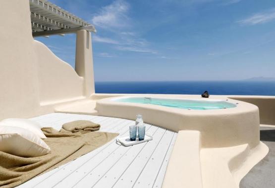 Acest hotel la plajă se află la cam 5 km de plajă puțin mai departe de centru, intr-o zonă liniștită - ideal pentru cei ce apreciază liniștea și izolarea sau pentru cei ce vor să se plimbe prin Imerovigli.