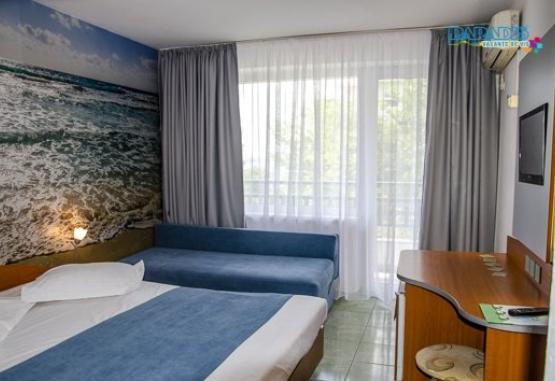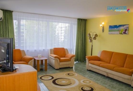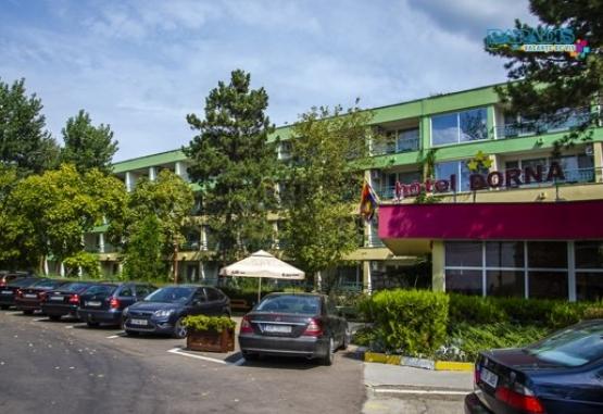 HOTEL DORNA este situat in nordul statiunii si renovat in 2010 si dispune de 147 camere din care 142 sunt camere duble si 5 sunt apartamente.Va informam ca incepand cu sezonul 2023, se va incasa la receptie in momentul cazarii taxa de statiune, reprezentand 1% din valoarea tarifului de cazare fara T.V.A, pentru fiecare noapte de cazare conform HCL NR. 614/27.12.2022Dotari si serviciiHotel Dorna dispune de plaja privata.Turistii beneficiaza de 2 sezlonguri gratuite si o umbrela!Hotelul pune la dispozitie piscina amenajata cu sezlonguri si umbrele, sala de conferinte cu 45 locuri, rampa de acces pentru persoane cu dizabilitati, baby cot, restaurant.Parcarea autovehiculelor clientilor hotelului este pusa la dispozitie in parcarea cu locuri limitate - proprietatea Primariei Constanta.Hotelul nu rezerva, nu asigura locuri de parcare si nici nu percepe taxa pentru parcare.Hotelul nu accepta animale de companie.Servicii masaRestaurant propriu - Petit Jardin 3*.Demipensiune: Mic dejun si cinaTuristii au obligativitatea de a purta bratara pe care o vor primi la cazarea in hotel. Dotari camereCamera matrimoniala are o suprafata totala de 18 mp din care baia are 3.5 mp si este dotata cu cabina de dus si uscator de par, pat matrimonial (180x200), cosmetice hoteliere, smart TV, internet , minibar, aer conditionat, telefon, mocheta, seif, balcon cu mobilier. Camera twin are o suprafata totala de 18 mp incluzand baia de 3.5 mp si este dotata cu cabina de dus si uscator de par. Camera dispune de doua paturi si un fotoliu extensibil.Apartamentele (la cerere) se compun din living cu canapea extensibila, dormitor cu pat matrimonial (180x200), baie cu cadita de dus, tv, aer conditionat in living, iar camerele nu sunt despartite cu usa. Pot avea balcon, insa repartizarea se face la receptie, in functie de disponibilitate. Se poate acomoda baby cot. Suprafata 43 mp. Facilitati copiiIn camera cu 2 adulti:- 0- 11.99 ani gratuit, fara pat suplimentar;