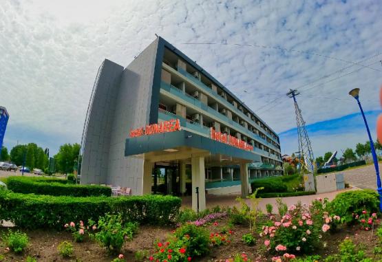 InformatiiHOTEL DUNAREA este renovat complet si este situat in partea de sud a statiunii Mamaia, langa hotel Aurora si parcul de distractii Aqua Magic, la numai 50 m de plaja. Este dispus pe 4 etaje si are 60 camere cu pat matrimonial, 61 camere cu 2 paturi, 9 apartamente.Va informam ca incepand cu sezonul 2023, se va incasa la receptie in momentul cazarii taxa de statiune, reprezentand 1% din valoarea tarifului de cazare fara T.V.A, pentru fiecare noapte de cazare conform HCL NR. 614/27.12.2022Dotari si serviciiHotelul beneficiaza de seif, bar cu terasa si parcare contra cost in limita locurilor disponibile.Nu se accepta cazarea in regim single.Nu se accepta animale de companie.Servicii masaMASA: restaurant propriu.Mic dejun - bufet suedezPranz - bonuri valorice - masa in valoare de 80 lei/pers/ziCina - bonuri valorice - masa in valoare de 75 lei/pers/ziPACHETELE CU DEMIPENSIUNE SI PENSIUNE COMPLETA NU INCLUD MASA PENTRU COPIII CU VARSTA CUPRINSA INTRE 0- 4.99 ANI.Dotari camereCamerele duble cu pat matrimonial (140x190 cm) sunt dotate cu aer conditionat, TV LCD, racit, grup sanitar, mobilier nou, usa cu acces pe baza de cartela, uscator de par, seif si telefon. In acest tip de camere se pot caza 2 adulti deoarece spatiul nu permite atasarea unui pat pliant. Demipensiunea camerei este de 14.3 mp.Camerele duble cu doua paturi (90x190 cm) sunt dotate cu aer conditionat, TV LCD, racit, grup sanitar, mobilier nou, usa cu acces pe baza de cartela, uscator de par, seif si telefon. In acest tip de camere se pot caza 2 adulti si 1 copil sau 2 adulti si 2 copii (pat pliant contra cost). Dimensiunea camerei este de 17.8 mp.Apartamentele sunt moderne si dotate cu un living cu canapea extensibila si dormitor cu pat matrimonial (180x190 cm), 2 TV LCD, aer conditionat, racitor, mobilier nou, doua grupuri sanitare, doua balcoane, usi noi cu acces pe baza de cartela, uscator de par, seif si telefon. In acest tip de camera se pot caza 2 adulti si 2 copii sau 3 adulti si 1 copil. Dimensiunea apartamentului este de 26.48 mp.Facilitati copii in camera cu 2 adulti:In camera matrimoniala se pot caza doua persoane adulte fara copii.In camera cu doua paturi:- primul copil 0- 9.99 ani beneficiaza de cazare gratuita;- al doilea copil 0- 9.99 ani va achita obligatoriu un pat pliant in valoare de 69 lei/ zi;- copil 10-14.99 ani achita obligatoriu un pat pliant in valoare de 69 lei/ zi;- un adult si un copil achita camera integral.In apartament se recomanda cazarea a 2 adulti si 2 copii sau 3 adulti si un copil.Copiii cu varsta peste 15 ani sunt considerati adulti si vor achita tariful intreg.MIC DEJUN:- copilul de la 0-4.99 ani are gratuitate la mic dejun;- copilul de la 5-11.99 ani achita 50% din valoarea micului dejun;- copilul peste 12 ani achita micul dejun integral.PRANZ SI CINA:- copilul de la 0-4.99 ani are gratuitate la mic dejun;- copilul de la 5-11.99 ani achita 80% din valoarea mesei;- copilul peste 12 ani achita micul dejun integral.