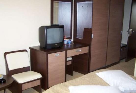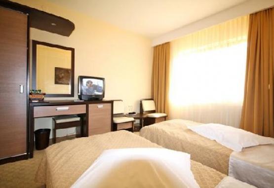 HOTEL COMPLEX GRAND este situat langa Sanatoriul Grand, la 500 m de plaja. Hotelul detine 25 camere duble, 2 apartamente si 2 duplexuri.Turistii peste 14 ani vor achita la receptia hotelului taxa de statiune dupa cum urmeaza: 3 lei/pers/zi in perioada 01.01 - 30.04 si 01.10 - 31.12, respectiv 5 lei/ pers/zi in perioada 01.05 - 30.09. Persoanele cu handicap sunt scutite de la plata.Dotari si servicii:Hotelul detine restaurant cu terasa, sala de conferinte, sala fitness, sauna, jacuzzi, salon cosmetica, masaj, spa, piscina interioara, parcare gratuita.Servicii masa:Restaurant propriu 3*, micul dejun se serveste in variante meniu, pranzul si cina in sistem bonuri valorice.Dotari camere:Camerele duble sunt dotate cu aer conditionat, minibar, TV, internet, baie cu cabina de dus cu hidromasaj, uscator par, mocheta, mobilier nou, 2 fotolii, acces pe baza de cartela. Camerele de la etajul 1 si 2 au balcon.Camerele triple au in dotare un pat matrimonial si un pat de o persoana sau o canapea extensibila (pentru o persoana). In rest, au aceleasi dotari ca si camerele duble.Apartamentele dispun de mobilier nou, living cu canapea extensibila din piele, fotolii, TV, minibar, aer conditionat, mocheta, baie cu cada cu hidromasaj, uscator par, bideu, dormitor cu pat matrimonial, mocheta.Facilitati copii in camera cu 2 adulti:- 0-9.99 ani beneficiaza de gratuitate la cazare, fara pat suplimentar;- peste 10 ani achita 50% din cazare, cu pat suplimentar. Masa se achita integral.