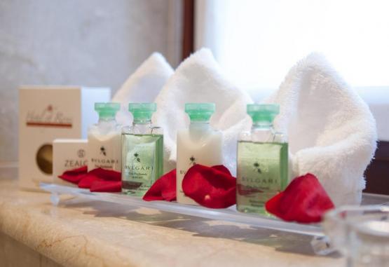Camerele și suitele de la Grande Albergo Delle Rose sunt decorate elegant și oferă aer condiționat, TV cu ecran plat, dulap și birou. Toate unitățile de cazare includ o baie privată cu articole de toaletă gratuite Bvlgari, papuci și uscător de păr. Unele camere ale hotelului au balcon cu vedere la mare. Cele mai multe suite sunt dotate cu o cadă spa.