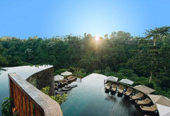 Situat la nord de Ubud, cuibarit in secret in imprejurimile junglei senine și exotice, cu vederi minunate ale templului Dalem Segara, se află Hanging Gardens din Bali, resortul romantic de lux prin excelență. Vilele noastre frumoase inspirate din junglă oferă cazare de neegalat intr-un cadru luxos și oferă piscine infinite private, zone de living spațioase și vederi panoramice ale peisajului luxuriant din jur. Hanging Gardens of Bali este conceput pentru a se integra in mediul natural, oferind oaspeților un sentiment de liniște și evadare din agitația vieții urbane.Experimentați o aventură gastronomică fără egal in Bali, cu un serviciu legendar, care este esența ospitalității balineze. Luați masa in timp ce treceți cu vederea nucleul nostru spiritual, „Cea mai bună piscină din lume”, numită așa de Conde Nast Traveler. Colecția noastră de spa cu adevărat luxoasă va liniști mintea, va intineri corpul și va energiza sufletul in timp ce ascultă sunetele repezi ale raului Ayung.