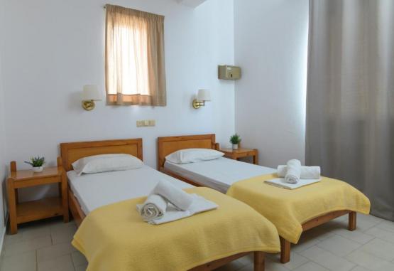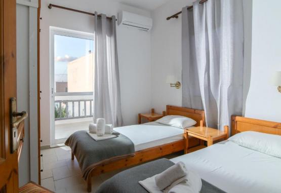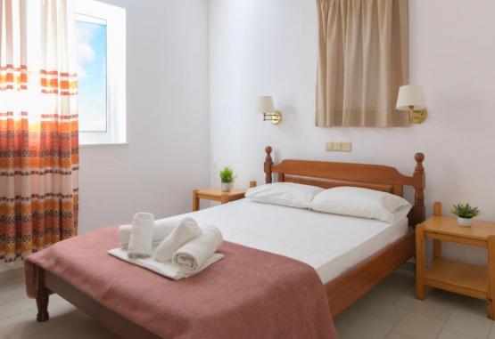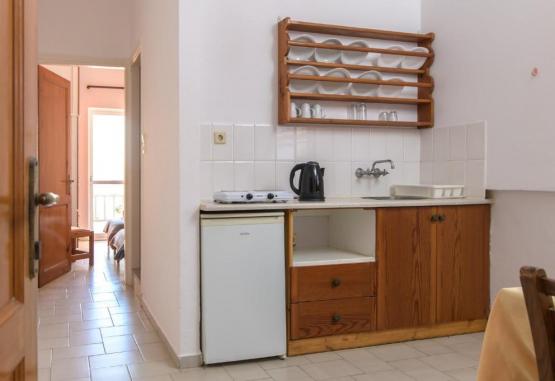 Toate apartamentele de la Haris sunt spațioase si au aer condiționat și chicinetă cu zonă de luat masa. Balconul sau terasa acestora are vedere la Marea Cretei, la grădină sau la munții din jur. La cerere sunt disponibile un fier de călcat si un uscător de păr.