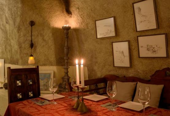 Incluzand specialităti de casă si paine proaspătă, micul dejun bogat tip bufet este servit in fiecare dimineată in pestera naturală si in curtea de langă aceasta. Seara puteti savura vinuri locale, cocktailuri si băuturi, precum si gustări, salate proaspete si preparate usoare in această pesteră naturală.