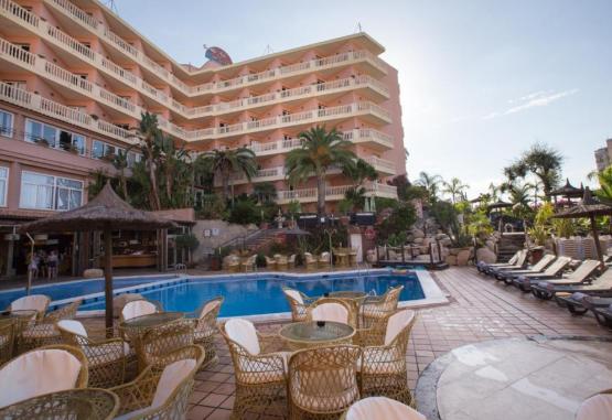 Restaurantul in stil bufet serveste micul dejun, pranzul si cina. Acesta oferă un amestec de mancăruri spaniole si internationale. Barul de langă piscină organizează spectacole săptămanale, inclusiv dansuri flamenco.