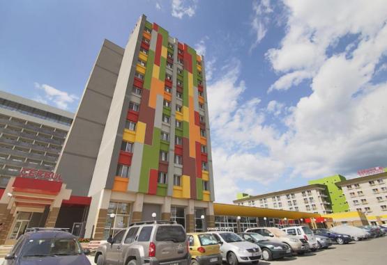Localizare:In centrul statiunii, langă Hotelul Covasna, avand legătură interioară cu acesta, cu Restaurantul Covasna 3* si cu Baza de Tratament, prin pozitia acestuia conferind turistilor o priveliste deosebită asupra intregii statiuni.Hotelul pune la dispozitia turistilor toate dotarile standard ale clasei precum si un Bar modern si o Sala de Conferinta.Barul Cerbul are in dotare o sala cu doua mese de biliard si doua aparate de darts pentru petrecerea cat mai placuta a timpului liber.Hotelul are 10 etaje, 2 lifturi, un restaurant comun cu Hotelul Covasna cu o capacitate de 296 de locuri dispuse in 2 saloane (280 de locuri) și o terasă (16 locuri), un bar de zi ultramodern, clasificat de asemenea la 3* cu 234 locuri repartizate in 3 saloane și 2 terase, terasa, sala de jocuri, centru de tratament, piscina interioara, sala de gimnastica, magazine, salon manichiura/pedichiura, agentie de turism, internet, parcare pazita, plata cu credit card.Cazare:258 locuri in 129 camere duble.Camerele sunt dotate cu: telefon, baie cu dus, cablu TV, minibar, seif.Atuuri: - hotel renovat complet in 2012 - acces la baza de tratament moderna a Hotelului Caprioara - efect foarte puternic al mofetelor naturale din baza de tratament construita chiar pe sursa de CO2; - tratament cu apa carbogazoasa - posibilitati de agrement: organizare de drumetii de munte, pescuit, minifotbal, tenis de masă si de camp, darts, jocuri mecanice.