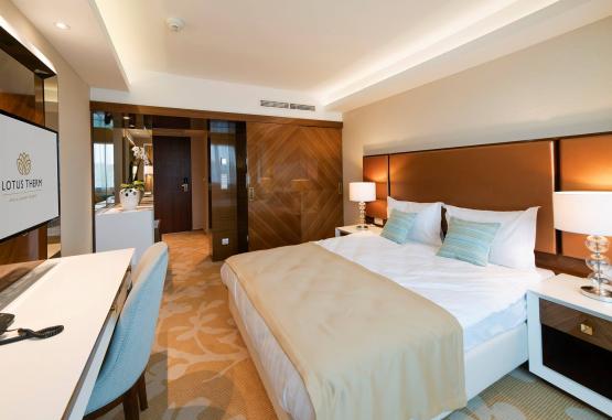 Localizare:Amplasat aproape de liziera padurii, in preajma lacurilor cu lotusi sacri, nuferi albi si nuferi termali.Lotus Therm SPA & Luxury Resort este unicul complex termal de 5 stele din Romania. Felixarium este construit si proiectat la cele mai inalte standarde si ofera distractie si surprize, indiferent de varsta. 14 piscine interioare si exterioare cu recirculare si apa termala, jacuzzi, pesteri, cascade, 2 tobogane, zone de luat masa (Cascada Bar, Yammi Grill, Tiki Bar), teren de beach volley, centrul GOLD SPA cu 3 tipuri de sauna si camera de gheata. Insa, atractia principala ramane cupola retractabila de deasupra piscinelor interioare care lasa la vedere un impresionant spectacol celest, diurn sau nocturn.Cazare:180 camere si 262 de locuri de cazare (79 camere single, 37 camere double, 3 camere pentru persoane cu dizabilitati, 39 apartamente standard, 8 suite si 6 apartamente speciale VIP, Honeymoon, Gold, Blue).Tratament:Centrul de tratament balnear si SPA, Nelumbo Med-SPA, este perfect conectat cu hotelul de 5 stele. Centrul dispune de cele mai variate servicii si terapii: hidroterapie, impachetari si bai cu namol, impachetari cu parafina, electroterapie, hidrokinetoterapie, kinetoterapie, masaje, piscine interioare cu apa termala, cosmetica, saune si o fantana cu gheata pentru curajosii care vor sa se racoreasca. Apele termale din Baile Felix sunt cele mai curative si apreciate din regiune, avand proprietati miraculoase pentru majoritatatea afectiunilor aparatului locomotor.Cea mai mare si mai cunoscuta statiune balneara din Romania, premiata international pentru apele sale termale inca de acum un secol, se repozitioneaza astazi pe harta serviciilor turistice a continentului. Baile Felix, de 30 ani prezenta pe piete-tinta externe precum Germania, Austria, Israel sau tarile nordice, este destinatia potrivita pentru tratament, intretinere, agrement dar si pentru intalniri de afaceri. Oferta programelor de tratament si de intretinere combina perfect metode moderne si traditionale in complexele balneare dotate cu aparatura de ultima generatie. Datorita apei termale si bioclimatului de crutare, tratamentul si baile (chiar in aer liber) sunt posibile tot timpul anului. Strandul Apollo-Felix, recent renovat, dispune de bazine cu apa termala si este operational tot timpul anului. In apropiere, la Baile 1 Mai, strandul Venus dispune de 14 bazine cu apa termala si este functional 5 luni din an. Cea mai moderna baza de tratament si wellness dintr-o statiunea balneara romaneasca, cu echipamente medicale noi furnizate de lideri in domeniu, functioneaza din primavara anului 2007 in Complexul International. Acesta dispune si de doua sali de conferinta modern utilate care sustin, alaturi de hotelurile Termal si Nufarul oferta agentiei pentru evenimente de afaceri. Partea de agrement este completata de Club Dark din centrul statiunii. Factorii naturali de cura: - apele minerale cu temperaturi cuprinse intre 32 - 49 grade Celsius. Din punct de vedere chimic, apa termala este calcica, bicarbonata, sodica, sulfatata, oligominerala si silicioasa; - bioclimat de crutare Afectiuni tratate: - reumatism inflamator - reumatism cronic degenerativ - afectiuni reumatice abarticulare - afectiuni post-traumatice - afectiuni ale sistemului nervos central si periferic - afectiuni ale sistemului circulator periferic1.
