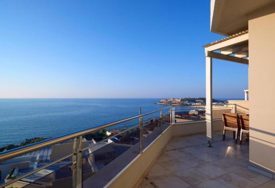 Facilități cameră dublă: tip apartament, vedere piscina sau mare, pat matrimonial, AC, Wi-Fi, minifrigider, baie proprie, uscător de păr, TV, balcon/terasă.