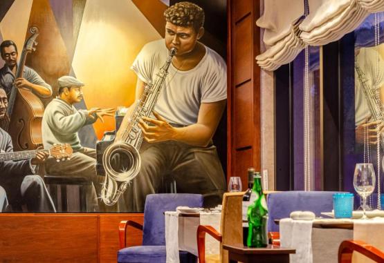Restaurantul Blu servește o serie de mancăruri internaționale, iar oaspeții pot savura o băutură după masă la barul alăturat. Proprietatea oferă zilnic un mic dejun generos, cu chifle, fructe proaspete și preparate calde.