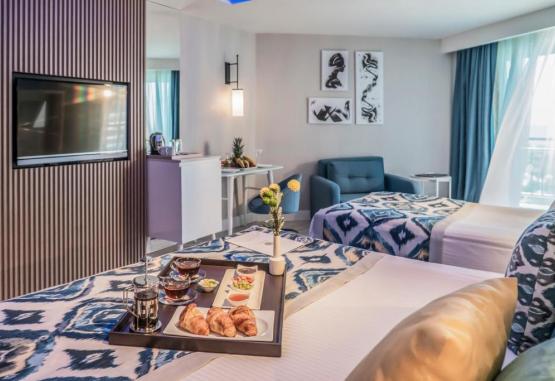 Royal Wings Hotel se găsește in Lara, la 14 km de Poarta lui Hadrian, și are o piscină in aer liber sezonieră, un centru de fitness, o grădină și parcare privată gratuită. Acest hotel de 5 stele oferă WiFi gratuit, o zonă de plajă privată și un club pentru copii. Oaspeții au la dispoziție un centru spa și de wellness care include o saună, o piscină interioară, o cadă cu hidromasaj și o terasă.
