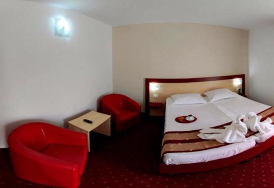 Localizare: La 50 m de centrul orasului Mangalia, pe faleza orasului, la 20 m de plaja si 100 m de Sanatoriul Balnear Mangalia. A fost renovat complet si redeschis in august 2012.Cazare:50 camere, dintre care 10 au vedere la mare si 4 apartamente.Toate camerele sunt dotate cu mobilier modern, acces cartela magnetica, sistem de climatizare, minibar, telefon, TV LCD, internet gratuit, grup sanitar propriu cu finisaje moderne.