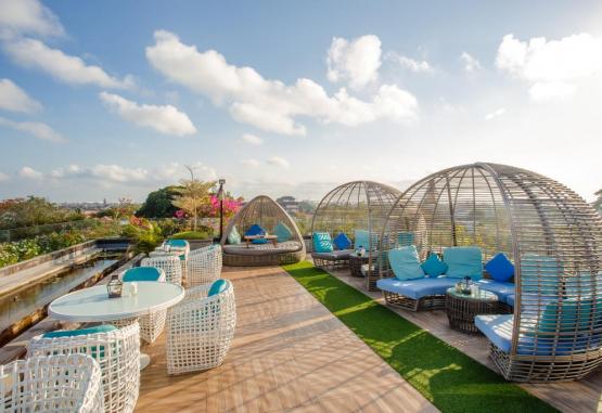 Localizare: peste drum de plaja din Jimbaran, Bali, in partea sud – vestică a insulei. Hotelul se află la 10 minute de mers cu mașina de aeroportul din Denpasar, Bali.