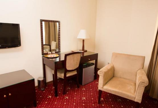 Acest hotel de 4 stele din Chișinău, cu un design impresionant, oferă camere izolate fonic, cu TV cu ecran plat, internet Wi-Fi gratuit și parcare gratuită păzită. Este chiar situat langă pitorescul Parc Valea Trandafirilor.