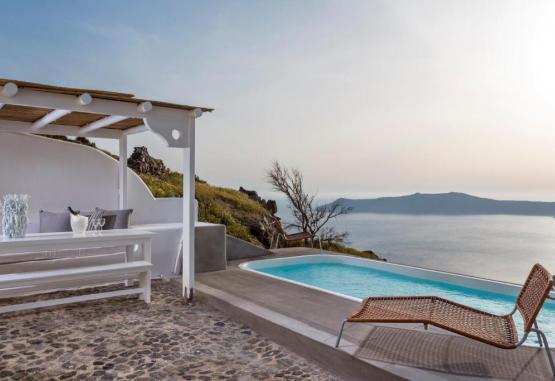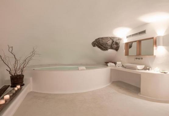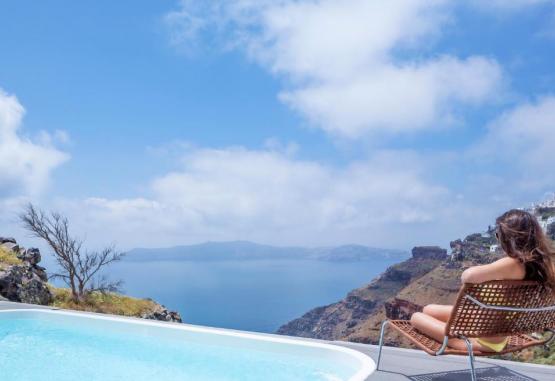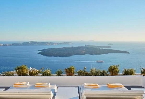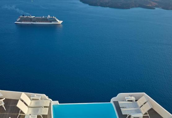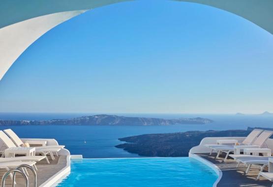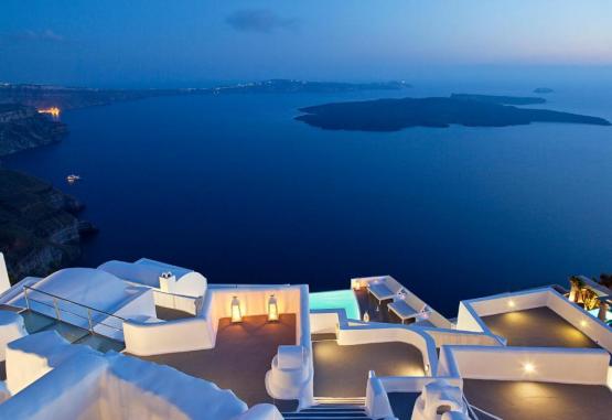 Acest hotel exclusivist din Imerovigli, in Santorini, este situat pe marginea Calderei, cu vedere la mare și la vulcan. Oferă o piscină infinită și camere cu verandă privată cu vedere minunată la mare.