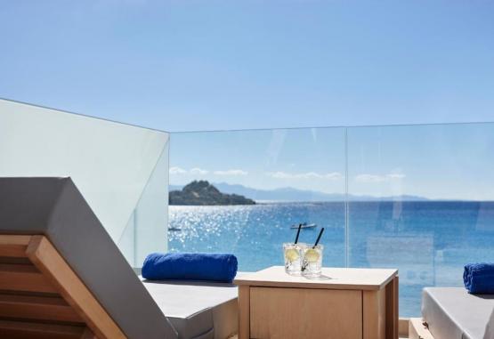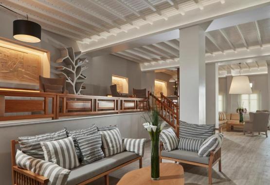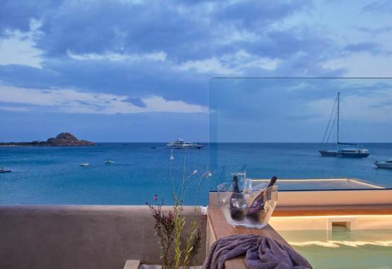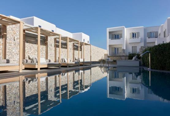 Hotelul dispune de centru spa, sală de fitness și oferă servicii de inchiriere auto pentru explorarea insulei. Seara, barul de pe plajă devine locul perfect pentru a admira apusul spectaculos specific Cicladelor.