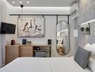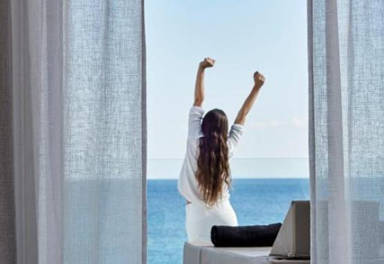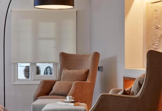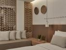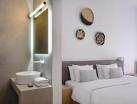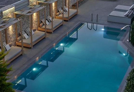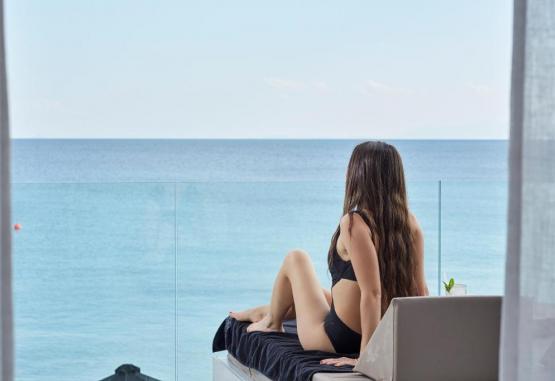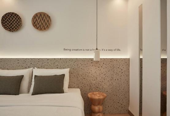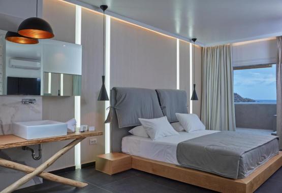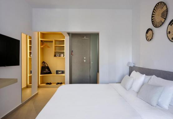 Camerele luminoase sunt decorate in stilul cicladic specific, cu nuanțe de alb și albastru, și sunt dotate cu balcoane private care oferă priveliști spre mare sau grădină. Oaspeții se pot bucura de piscina in aer liber și de restaurantul cu specific mediteraneean care servește preparate grecești autentice.