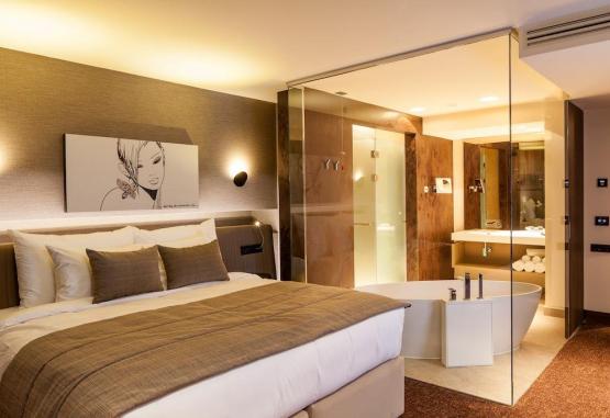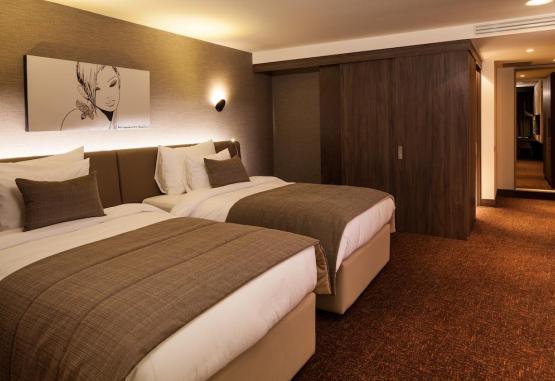 InformatiiSituat la 3,5 km de Piata Sfatului din Brasov si la 15 km de statiunea de schiDotari si serviciiSauna, sala de fitness, solar, spa centru de wellness, masaj, piscina interioara, teren de joaca pentru copii, Scoala de schi, bar, mic dejun in camera, restaurant (A la carte), snack bar, meniuri cu diete speciale (la cerere),Wi-Fi gratuit, room service, pranz la pachet, inchirieri auto, serviciu de transfer (contra cost), transfer de la/la aeroport (contra cost), receptie deschisa nonstop, check-in/check-out express, serviciu de vanzare bilete, camera de bagaje, bancomat, serviciu de concierge, check-in/check-out privat, babysitting/servicii pentru copii, spalatorie, curatatorie chimic, serviciu de calcatorie, lustruire pantofi, presa pentru calcat pantaloni, serviciu zilnic de menaj, sali de conferinta si petreceri, fax/copiator, barbier/salon de frumusete, facilitati VIP in camera, suita nuptiala, ziare, seif, camere pentru nefumatori, facilitati pentru persoane cu mobilitate redus, camere de familie, lift, camere izolate fonic, incalzire, zona pentru fumatori.Dotari camereCamerele au aer conditionat si includ o zona de relaxare cu TV cu ecran plat si minibar, precum si o baie cu articole de toaleta gratuite si halate de baie. Camerele au inclzire prin pardoseala, perne si lenjerie de pat hipoalergica, precum si o colectie de vinuri. Unele camere includ dotari ultramoderne precum iPad si TV HD. Facilitati copiiGratuit pentru un copil cu varsta intre 0-12 ani cand sunt folosite paturile existente, gratuit un copil pana in vatsta de 12 ani daca foloseste patul existent; Daca se doreste pat suplimentar se achita 30 eur/ zi