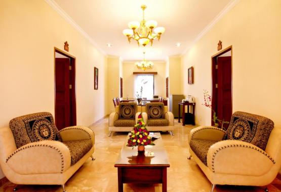 Bathed in warm light, air-conditioned rooms are equipped a satellite TV and a seating area. Other in-room comforts include a fridge, minibar and an electric kettle. Views of the lush greenery can be enjoyed from the private terraces or balconies.