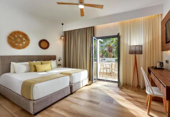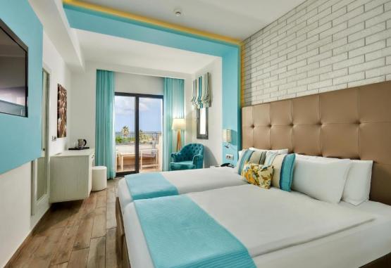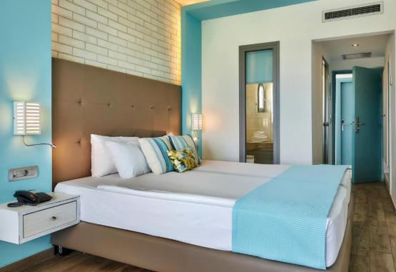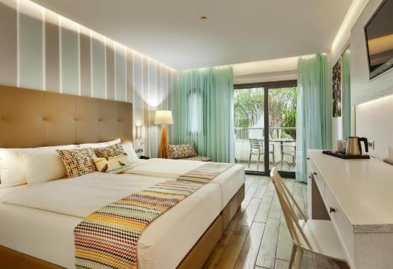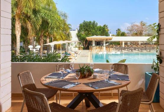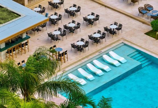 Camerele moderne sunt decorate in nuanțe mediteraneene și dispun de balcoane sau terase spațioase. Facilitățile principale includ două piscine exterioare cu șezlonguri și umbrele, un centru spa cu servicii complete, sală de fitness și un restaurant principal cu specific mediteraneean. Barul de la piscină servește cocktailuri rafinate și gustări pe tot parcursul zilei.