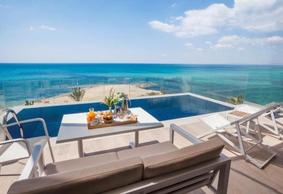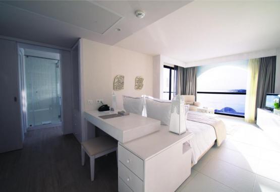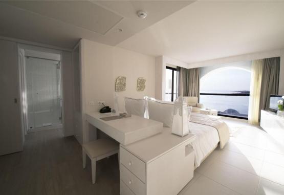 Toate camerele au TV cu canale prin satelit, aer condiționat și terasă. Dotările includ minibar și cutie de valori. Baia privată oferă halate de baie. Camerele au balcon cu vedere la mare și la piscină.